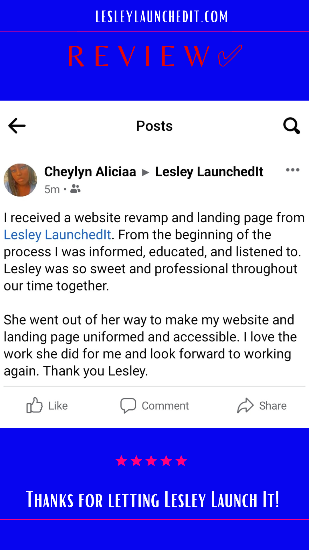 Our mission is to support small business entrepreneurs by offering affordable rates for web & graphic designs. We also provide motivational books and resources to help manage your business and website on your own plus more business services. See why you should Let Lesley Launch It: